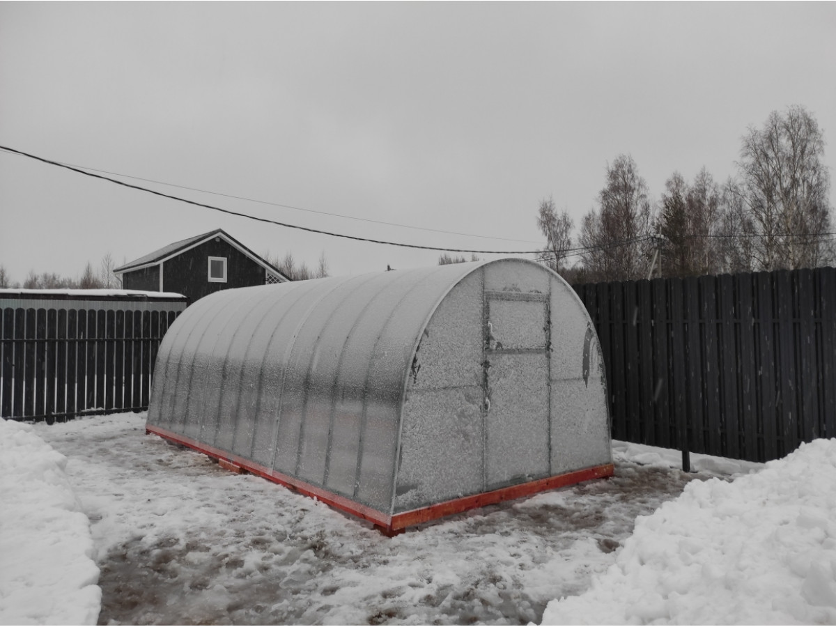 В разобранном виде теплица состоит из отдельных сварных рам в виде дуги.