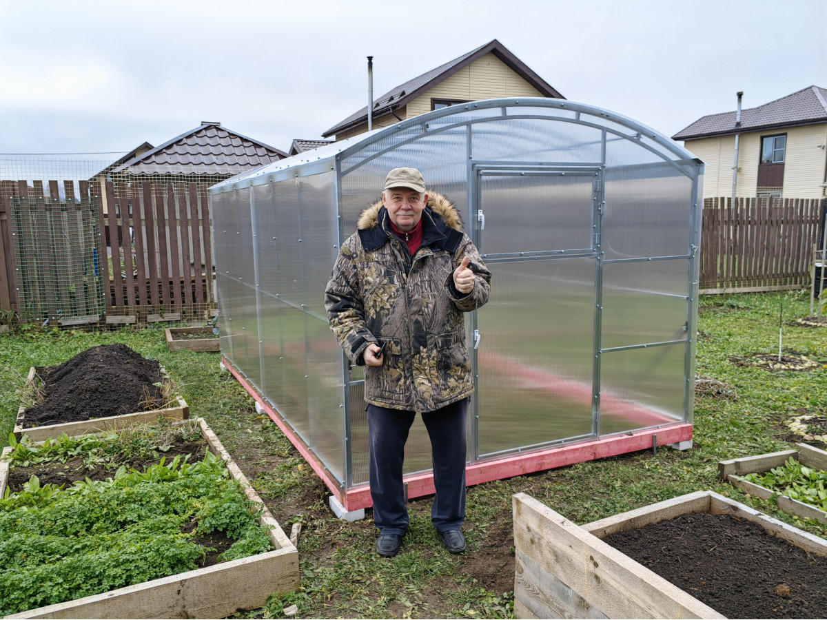 • теплица рекомендована для северных широт с большим количеством осадков, выдерживает порывистые ветра и сильные снегопады, не деформируется под слоем слежавшегося снега толщиной до 90 см;